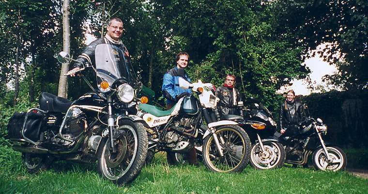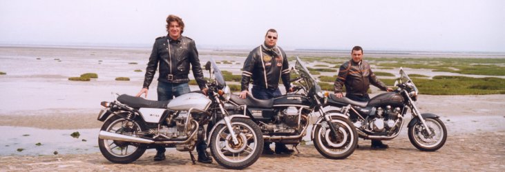 Mais revenons à cette rencontre MGWC (Moto-Guzzi Wrecking Crew, représenté par Tristan) et la délégation des NetVikings (Bertrand, dit Jésus, Eric la Huileuse et Clairon). Le compte-rendu de Tristan, seul membres du MGWC a avoir osé bravé la pluie normande en vue de rapprocher les peuples motards.