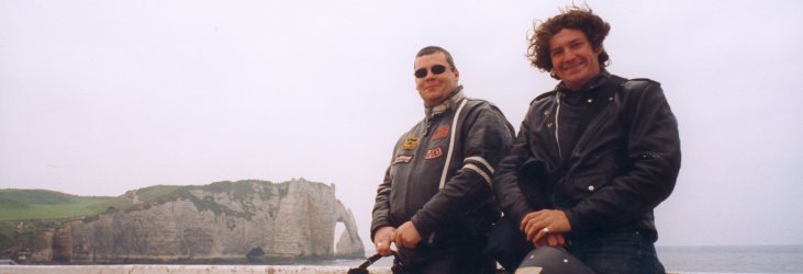Ah, les NetVikings... Vaste sujet. Au début était FRM, le fameux Newsgroup "Fr.rec.moto", le premier et incontournable moto-club virtuel sur le Net. Dans un coin de ce MC virtuel, les Normands, d'instinct grégaire, ce sont rassemblés. Pas idiot, comme démarche, dans le fond : c'est plus pratique pour aller prendre un pot ensemble. Les Normands étant proches cousins des Ecossais, (donc pingres...) et des Irlandais (donc consommateurs de bière rousse), je les soupçonne de s'etre rassemblés pour benéficier de tarifs de groupe quand ils commandent leur Guiness ! Il leur fallait bien donner un nom à ce groupe d'individus louches et assoiffés. Aussi, après de longues discussions qui-- on l'imaginent sans peine, assèchent les gorges au point de pousser à la consommation d'un breuvage frais dont le nom commence par "Gui" et fini par "Ness" -- ils ont fini par trouver le nom de "NetVikings" (beaucoup mieux que Cyber-Soiffards, il faut le reconnaître...).