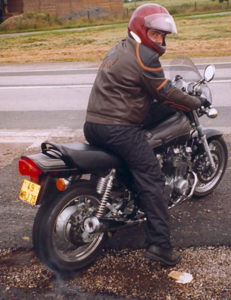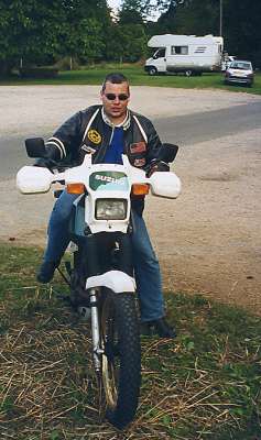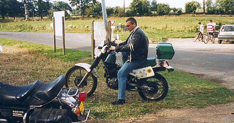 De son coté, Eric la huileuse roule sur un 750 GSX-F Suzuki tout plastique flambant neuf. La huileuse porte de son depuis une fuite d'huile qui s'est déclenchée dans les 500 premiers kilomètres de la Suz'... Les japonais ne sont plus ce qu'ils étaient !