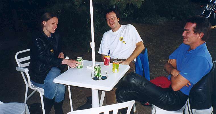 Enfin, retour vers Vendeuvre et la maison de Clairon. Re-Bière, (une manie, chez les NetVikings). Ils me font découvrir la chanson des NetVikings, citée plus haut. Il faudra que je mette un lien dès vers leur site pour y lire les paroles et même écouter un extrait (pour masochistes uniquement : a déconseiller aux oreilles sensibles et aux âmes en peine). Re-re-discute sur la vie, la moto. Cool, on ne se prend pas le chou. La vie et belle. Ils sont content, tout comme moi, de rouler cool. Je leur dit que j'ai eu l'impression d'être une bête et de dominer le sujet en roulant avec eux : pour une fois, je ne roulais pas au dessus de mes pompes ! Ils me répondent qu'ils aiment bien que les pires poireaux se sentent valorisés par leur allure d'escargot neurasthénique (j'exagère un poil, là ;-). Je leur suggère de changer de nom, de s'appeler les "Top-Lopette Emergency Response Team", un genre de groupe qu'on appellerait à l'aide quand on aurait des doutes à sa capacité de rouler vite. Tu roules un peu avec eux( 2 bières, 1 café, 200 bornes), et hop, t'as de nouveau l'impression de dominer le sujet... Ouais, mais ils ont l'air d'être attaché à leur NetVikings. On discute de choses et d'autres, tranquillous.